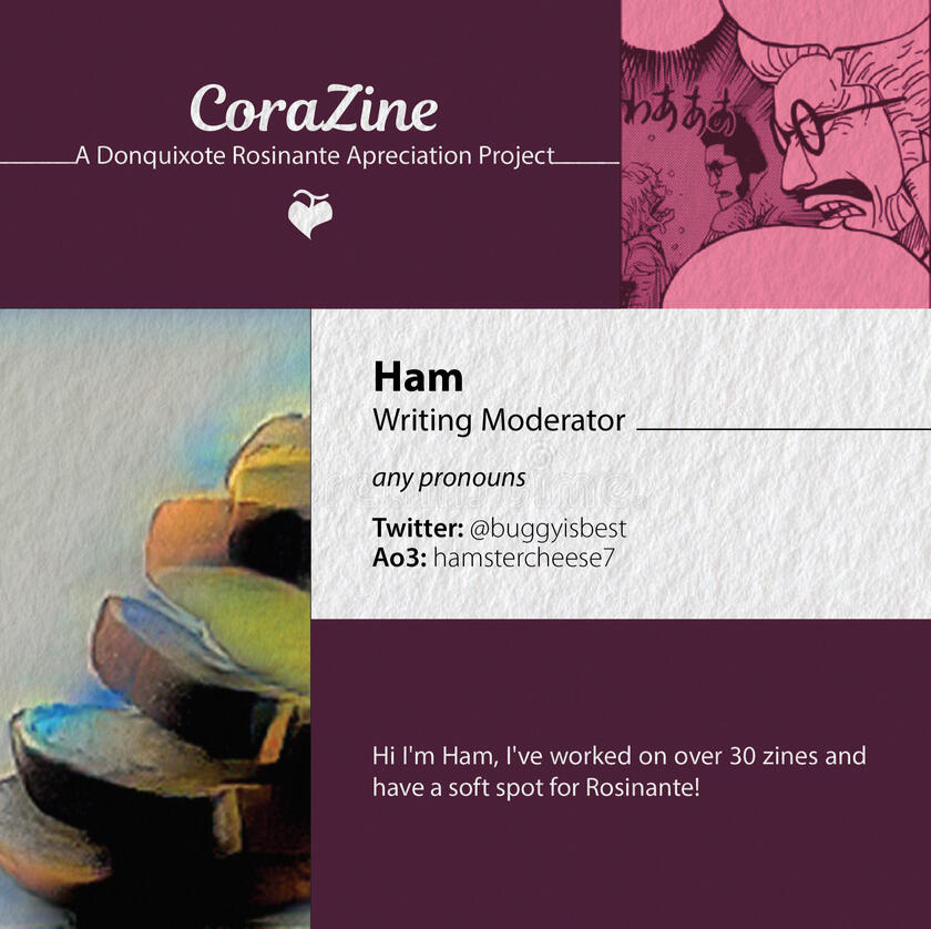 A zine focused on celebrating the life, relationships, accomplishments, and character of Donquixote Rosinante.