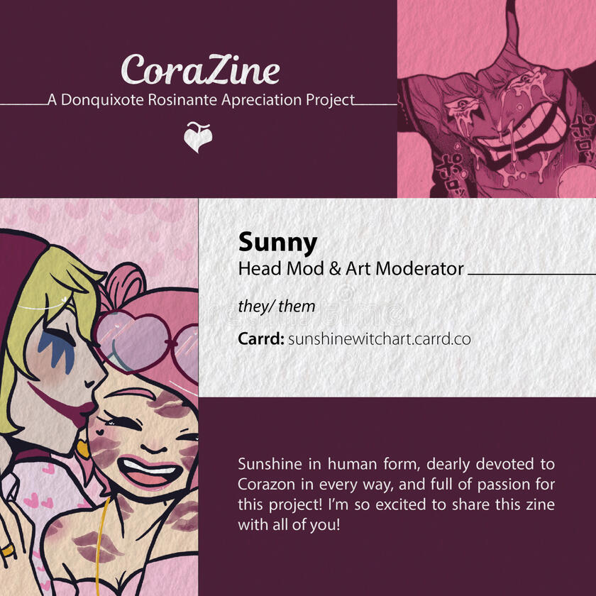 Subject to changes based on the interest check and mod team reviewThis is a Safe for Work & Romantic Ship Free Zine: We will be focusing on Corazon's canon relationships and bonds within the series, please ask if you have questions about what would be allowed. Platonic, Family, & Professional Relationships are all okay.At this time, whether the zine will be physical or digital is subject to information drawn from the interest check. Dates may change if they need to to reflect this. This as a result, will also determine if we have digital or physical merch. Roles and Responsibilities will be updated as needed to reflect this.